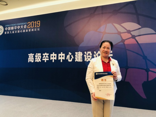 脑系中中心主任陈湛愔主任医师获“中国卒中中心管理指导委员会督查专家”称号
