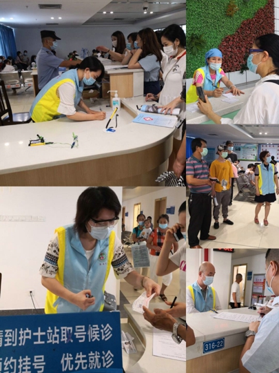 志愿者在提供取号候诊、前台咨询、导诊、路线指引、挂号就诊等服务