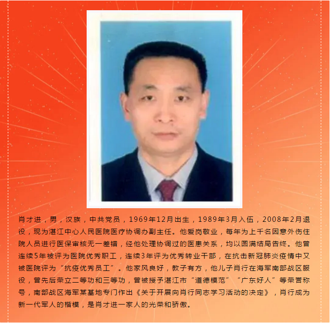 我院肖才进同志获2020年“湛江最美退役军人”殊荣