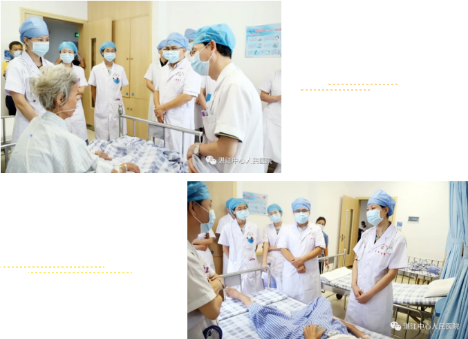 随后,郑燕芳教授重点查看了我科两名疑难患者。在认真听取了主管医师的病历资料汇报后,郑燕芳教授来到患者病床前,详细询问患者的发病时间、伴随症状、诊治过程等病史,仔细查阅患者既往病历资料,详细地给患者进行全身体格检查,并对两份病例进行了详细分析。