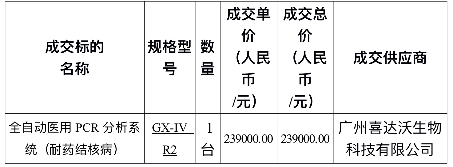 因我院工作的需要,需紧急采购医疗设备,现就采购的成交结果公示如下: