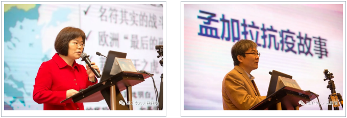 ▲中山大学第一附属医院急诊科副主任熊艳教授、海南医学会急诊医学分会主委刘笑然教授分别分享在塞尔维亚、孟加拉的抗疫故事