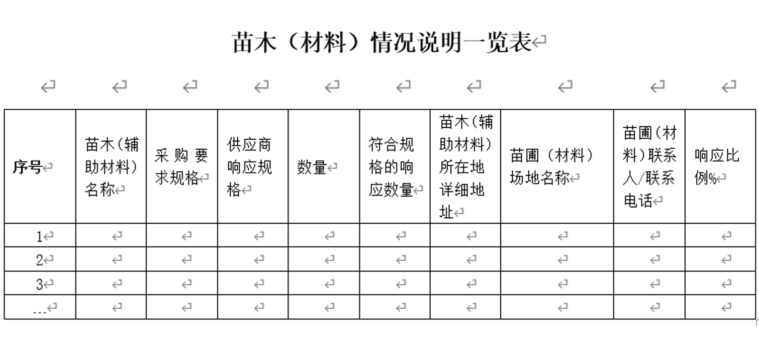 1、苗木(材料)情况说明(见下表)