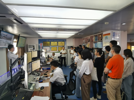 活动伊始,在海事局团员青年的带领下参观了“海巡0925”船,展示了先进的驾驶设备和监控救援技术,并结合他们出海执法经历,介绍了海事工作的职责和使命;随后,团员青年们走进湛江海事局VTS中心(船舶交通管理中心)全国青年文明号,从组织建设、工作要点、业务监管等方面了解了“慧眼护航,舟畅南疆”青年文明号的建设情况;最后,团员青年们汇聚在海事局会议室,十几位团员青年讲述自己印象最深刻的党史,分享自己的体会和感悟。郑钰组长对此次活动的举办及团员青年们的精彩分享给予了充分肯定,并与团员青年们分享了他本人的学史读书心得体会。