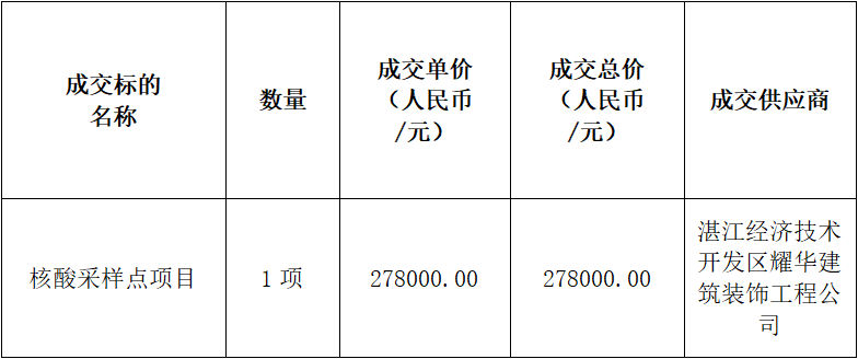 因新型冠状病毒感染的肺炎疫情防控工作的需要,我院需紧急采购一项核酸采样点项目,现就洽谈采购结果公示如下: