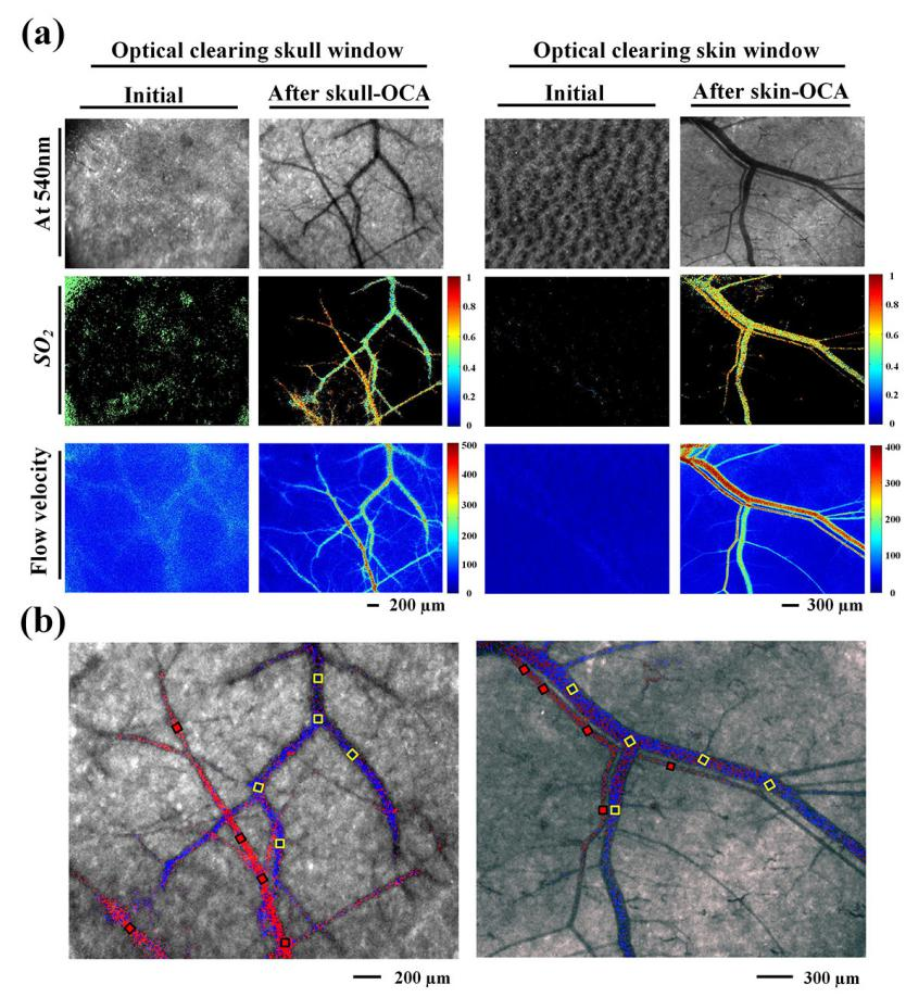 图1. 在体颅骨/皮肤光透明窗用于皮层/皮肤血管的血流/血氧的可视化研究