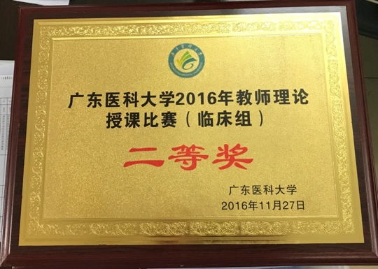 2016年广东医科大学授课比赛中,我院莫小庆医生荣获二等奖。