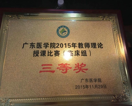 2015年广东医学院教师理论授课大赛中我院温琼娜老师获三等奖