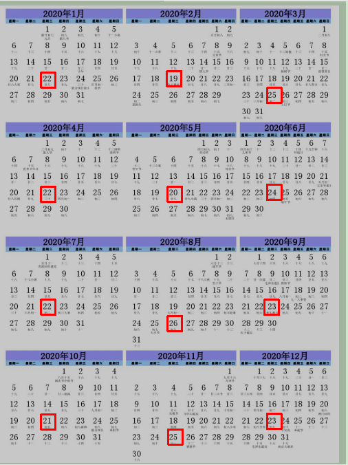 (红色方框为常规伦理审查会议开会日期,时间是每月倒数第二周的周三下午。如因特殊情况更改会议日期,则以当月通知时间为准)