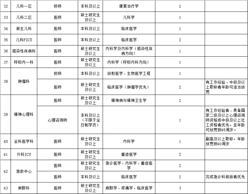 4、除有备注要求的以外,本科生要求年龄30周岁及以下,硕士研究生要求年龄35周岁及以下。