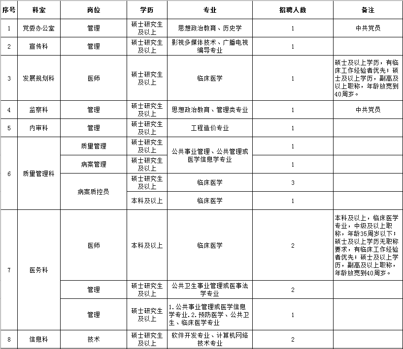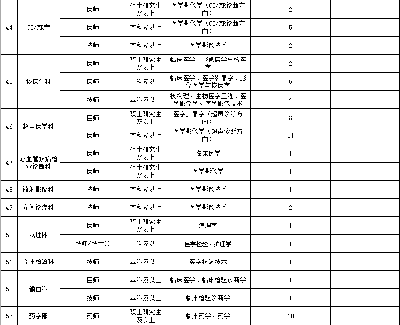 2、应聘医师岗位本科生必须具备医师资格证及相应岗位的规培证;硕士研究生原则上要求具备医师资格证及相应岗位的规培证(学术型研究生不作要求)。