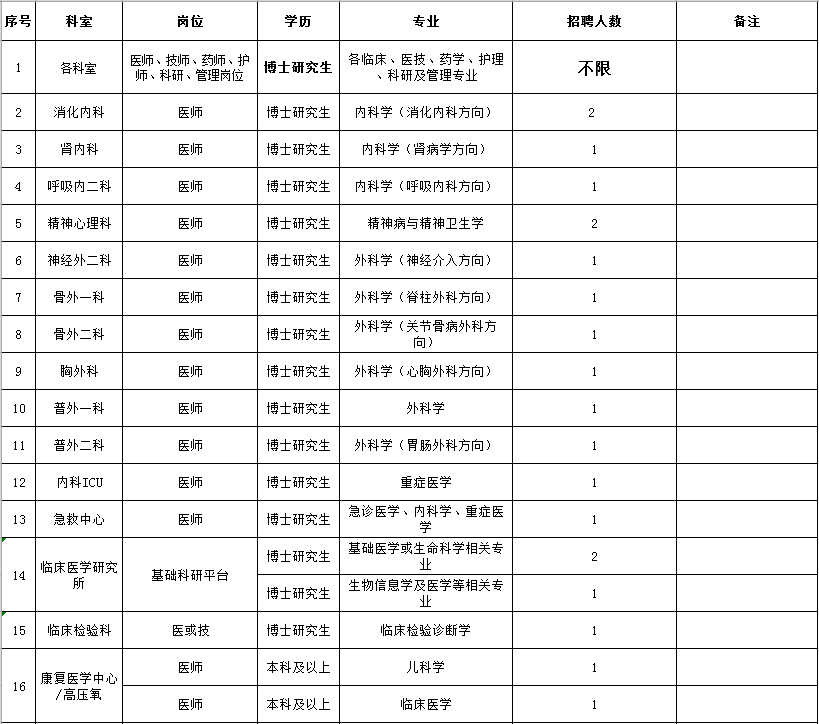 1、博士研究生不受名额及专业限制,常年公开招聘。