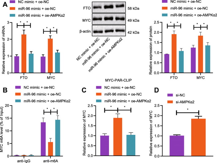 Fig 3. miR-96 impairs m6A modification of MYC by targeting AMPKα2.