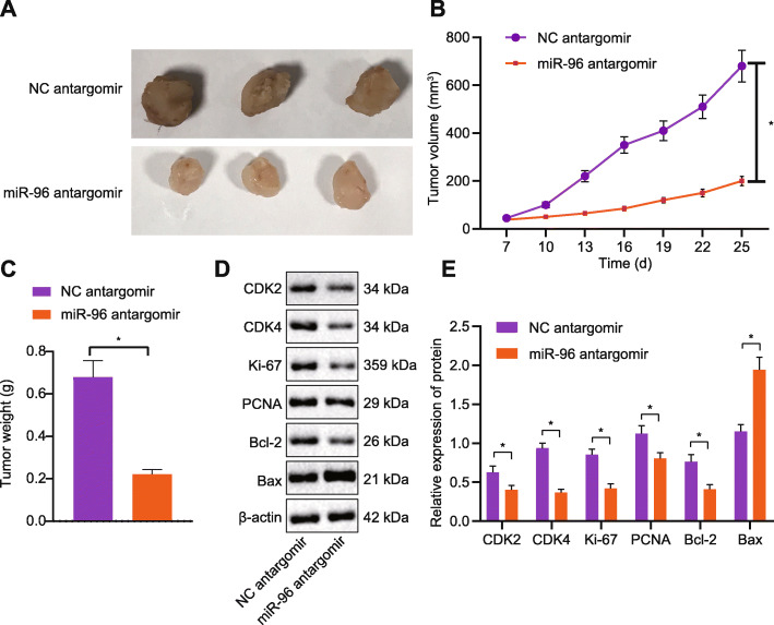 Fig 4. miR-96 antagomir inhibits the growth of CRC in vivo.