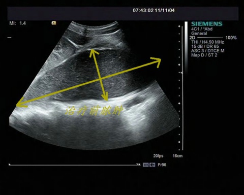 住院后,做了各项相关检查,双侧腰大肌巨大脓肿的病因还是不明,经过全科医生讨论一致认为目前患者病情不适于手术治疗。在这种特殊情况下请求医学影像超声科蔡艳主任会诊。记得初次做超声检查时,患者不能平卧,采取被动体位跪着做检查的。超声提示双侧腰大肌分别可见一巨大脓肿,大小分别为20cm×10cm×10cm,15×8cm×8cm,建议患者到我科进行经超声引导下穿刺抽液冲洗置管引流术。在蔡艳主任的亲自指导及操作下,经超声引导,在患者背后分别相应的打了两个直径3mm的孔,将8.5F引流管置入脓腔引流,以及药物冲洗。在患者住院期间,共引流出草绿色的脓液约2000ml。术后第一天,周叔就可以卧床作息了,再也不用趴在床沿上熬夜啦。介入手术之前周叔由于腹肌紧张,疼痛加剧,都不能伸直腰,甚至不能平卧,生活质量很差。