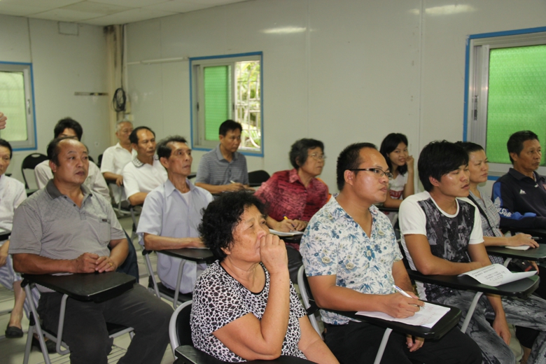 病人及家属都在认真听课