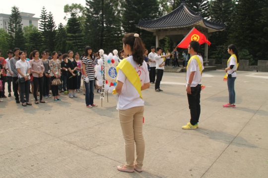 3月30日上午10点整,我院团员青年代表来到庄严肃穆的烈士纪念碑前。为了表达团员青年们无比的敬意,全体团员青年向烈士默哀一分钟,以此告慰革命先烈的不朽忠魂,寄托对革命英烈的崇敬与怀念。湛江师范学院党史志愿服务队为我院团员青年讲述了英雄烈士的事迹,重温了当年中华民族英雄儿女为民族和党的事业奋斗的历程,体会了他们同敌人浴血奋战的英雄气概,大家不禁肃然起敬。团员代表向烈士敬献了花圈;每名团员青年还献上白菊花。